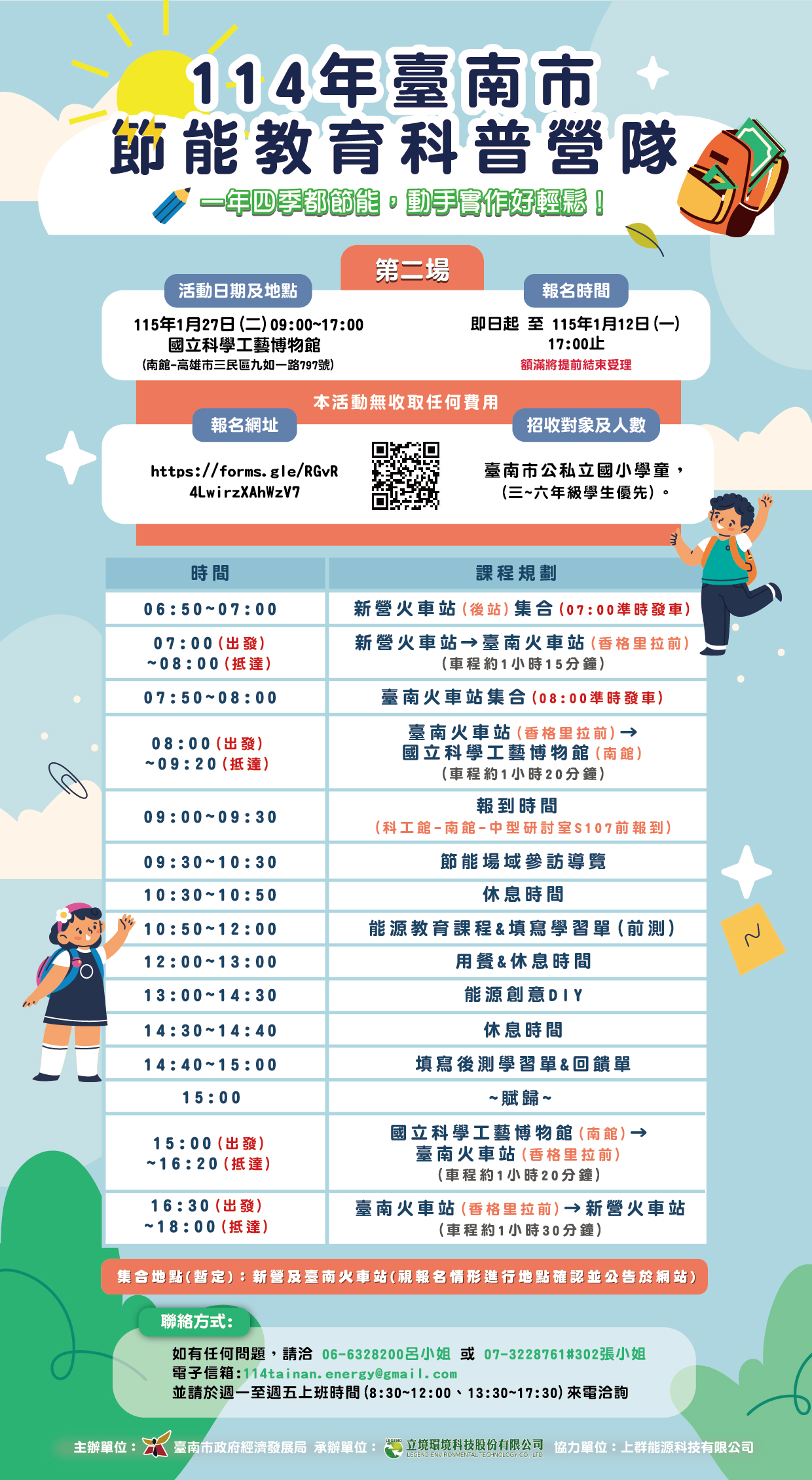 114臺南市智慧節電科普營好評再登場!!!萬眾期待第一梯次即日起開始報名囉!火速報名參加這次活動結合綠能科技、節能知識、實地導覽與手作體驗